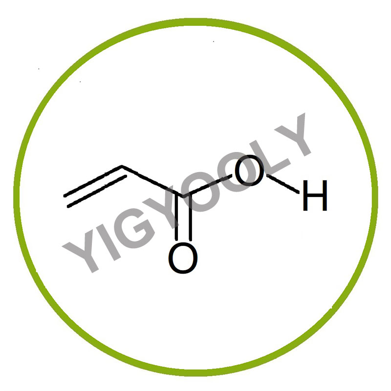 YIGYOOLY Kina levererar Akrylsyra är färglös vätska med irriterande lukt, smältpunkt 13,5 ℃, kokpunkt 141 ℃, relativ densitet 1,052, löslig i vatten, etanol och eter. Akrylsyraegenskaper är aktiva och benägna att polymeriseras i luft, Hydrogenering kan reduceras till propionsyra, Tillsats med väteklorid för att bilda 2-klorpropionsyra,
